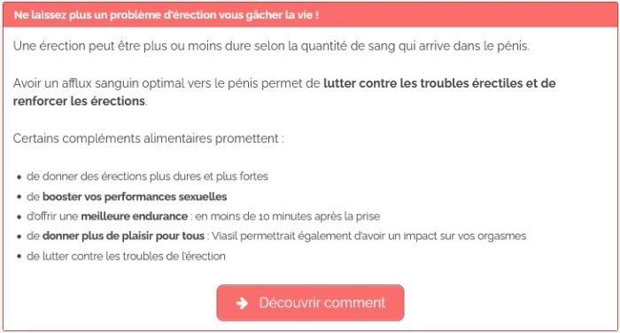 On rappelle que parmi les causes du dysfonctionnement érectile, outre le manque de testostérone, il y a des problèmes cardiovasculaires qui pourront être évités en restant actif.